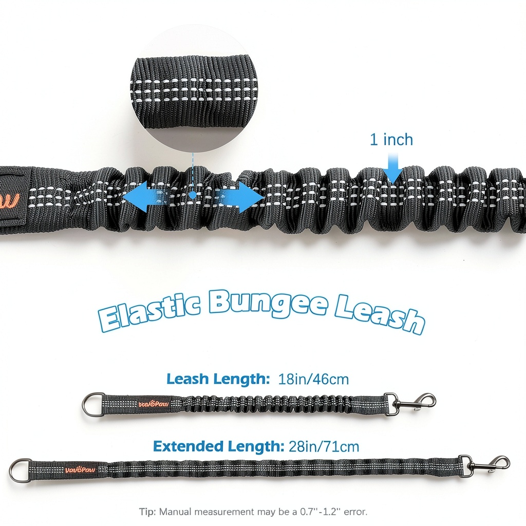 - Elastic bungee design absorbs shock from sudden pulls for safer walks